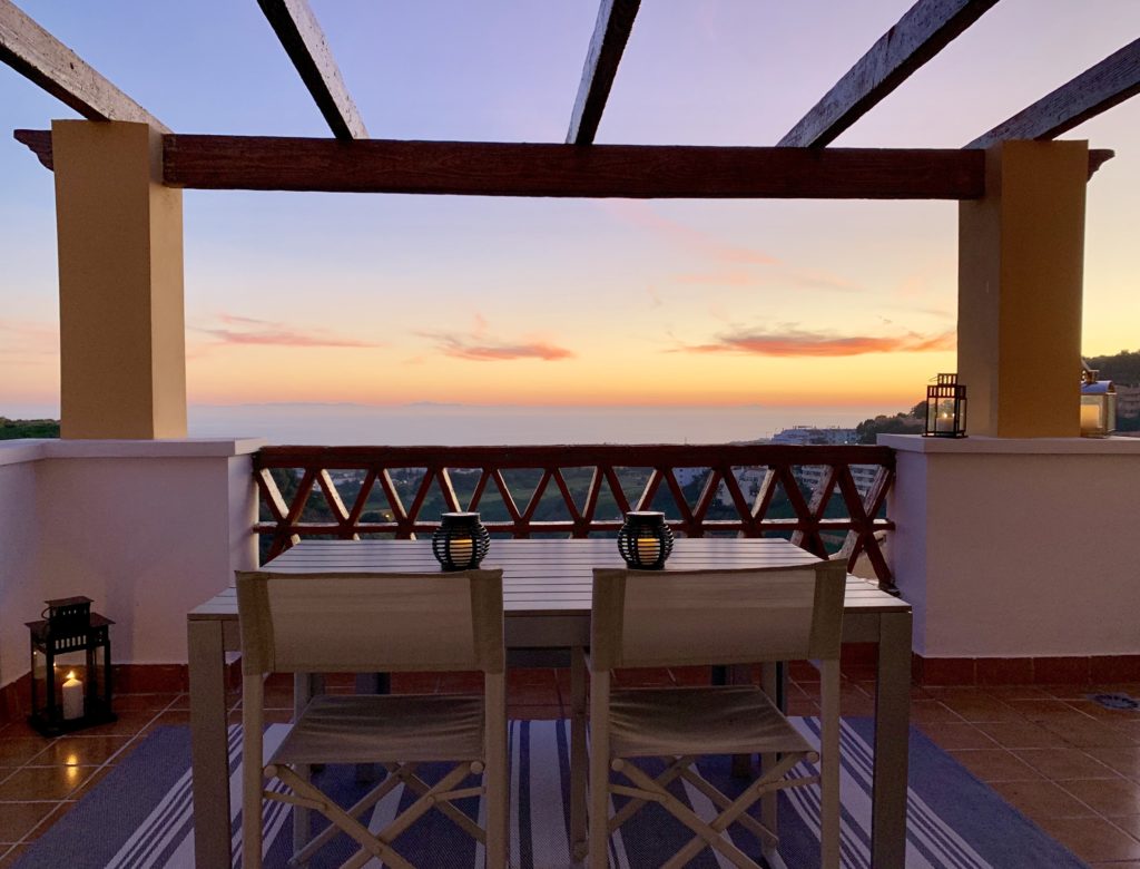The terrace on the living room is about 50 m² and offers a fantastic view of the sea and the mountains, a barbecue grill is available on the terrace.