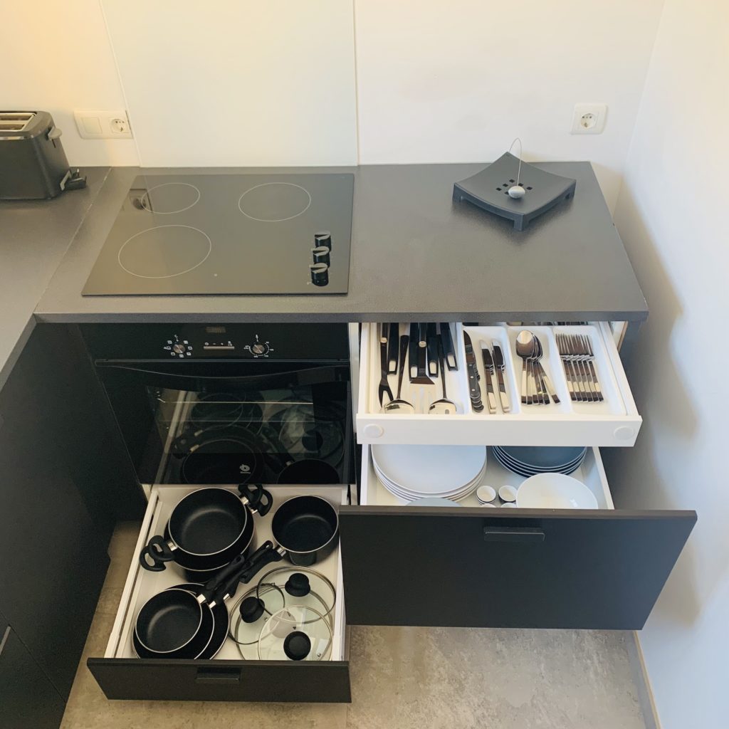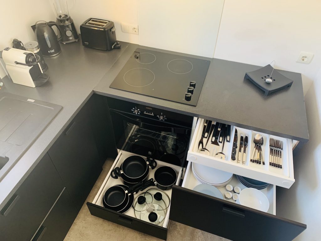 The marble bathroom has a large rain shower. The kitchen is also high quality and offers all electrical appliances and kitchen utensils including a Nespresso coffee machine.